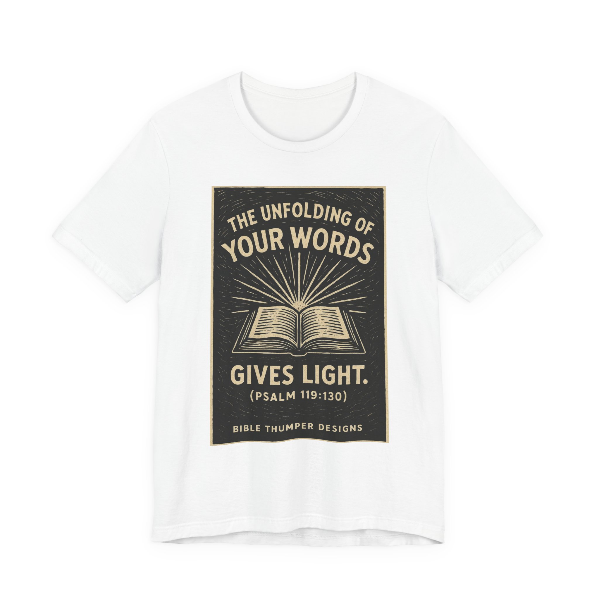 Bible Verse Tee — “The Unfolding of Your Words Gives Light” Psalm 119:130 Christian T-Shirt