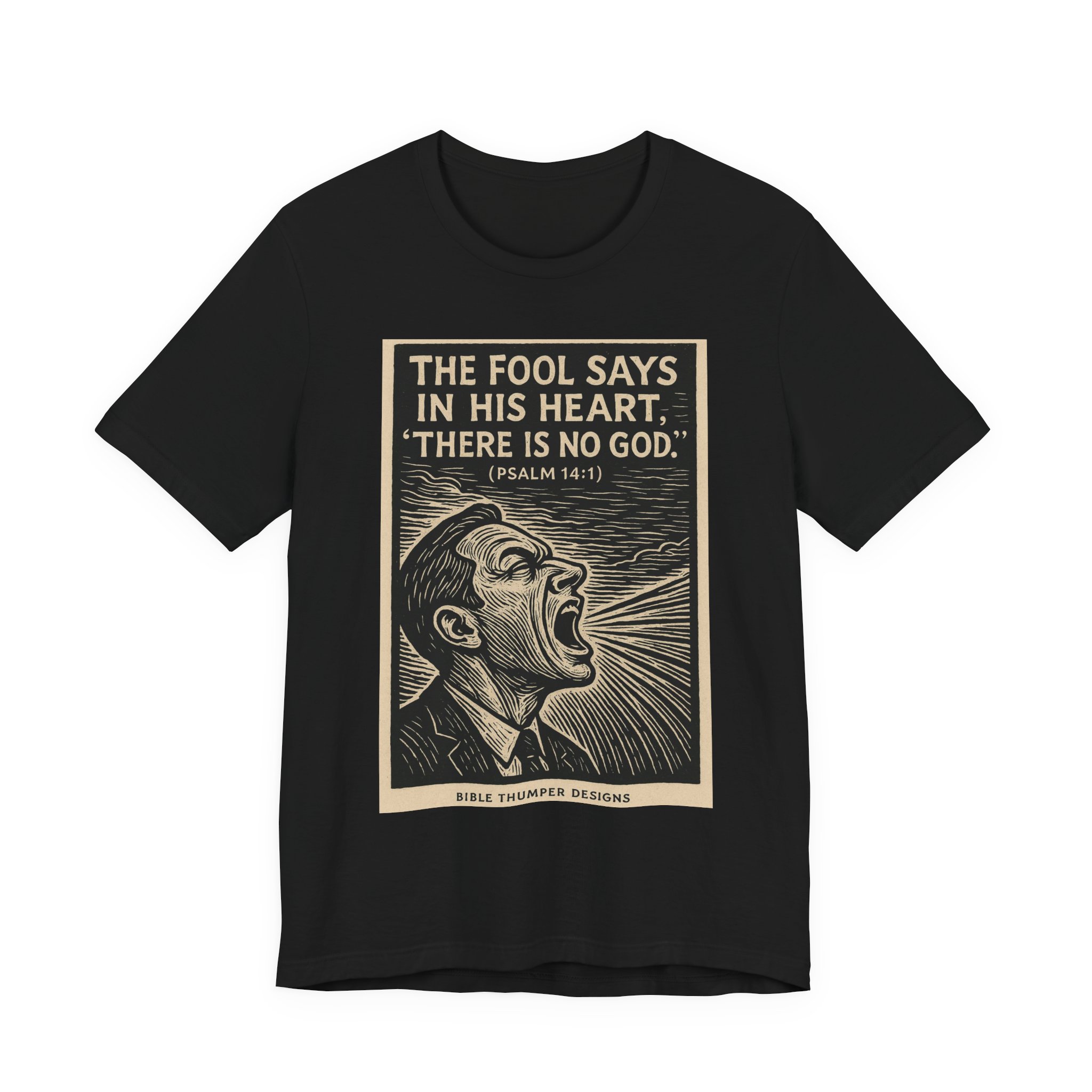 Christian Graphic Tee — “The Fool Says in His Heart ‘There Is No God’ (Psalm 14:1)”