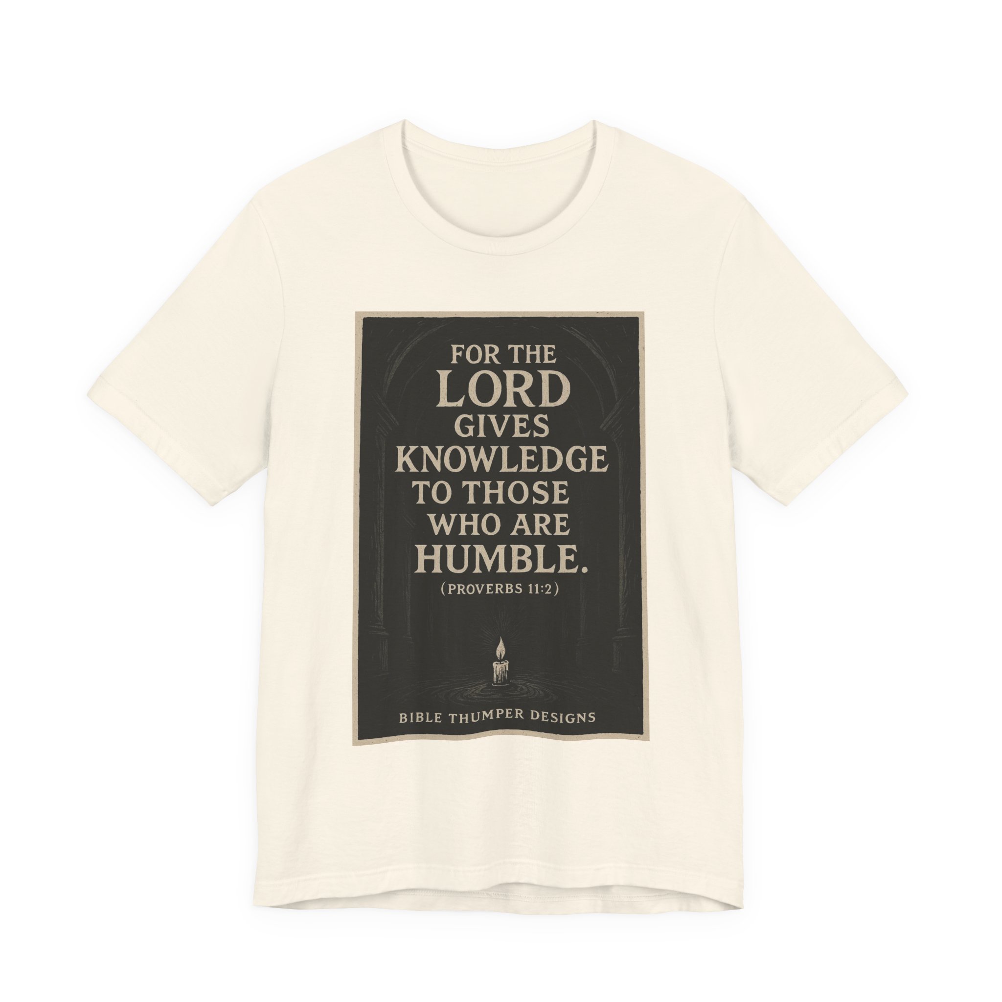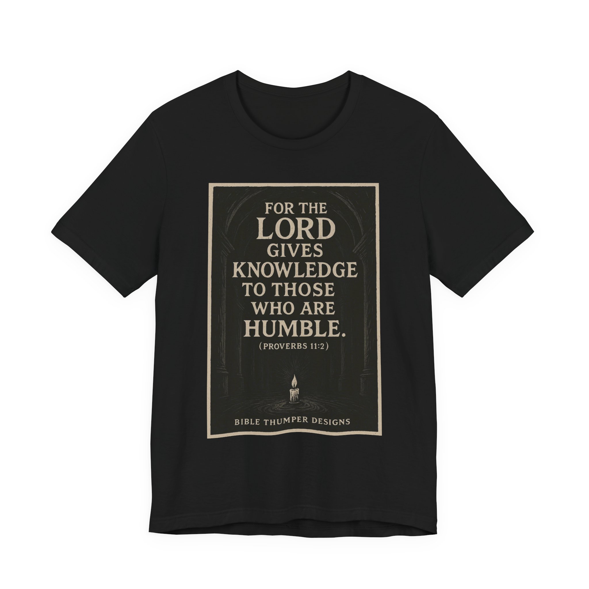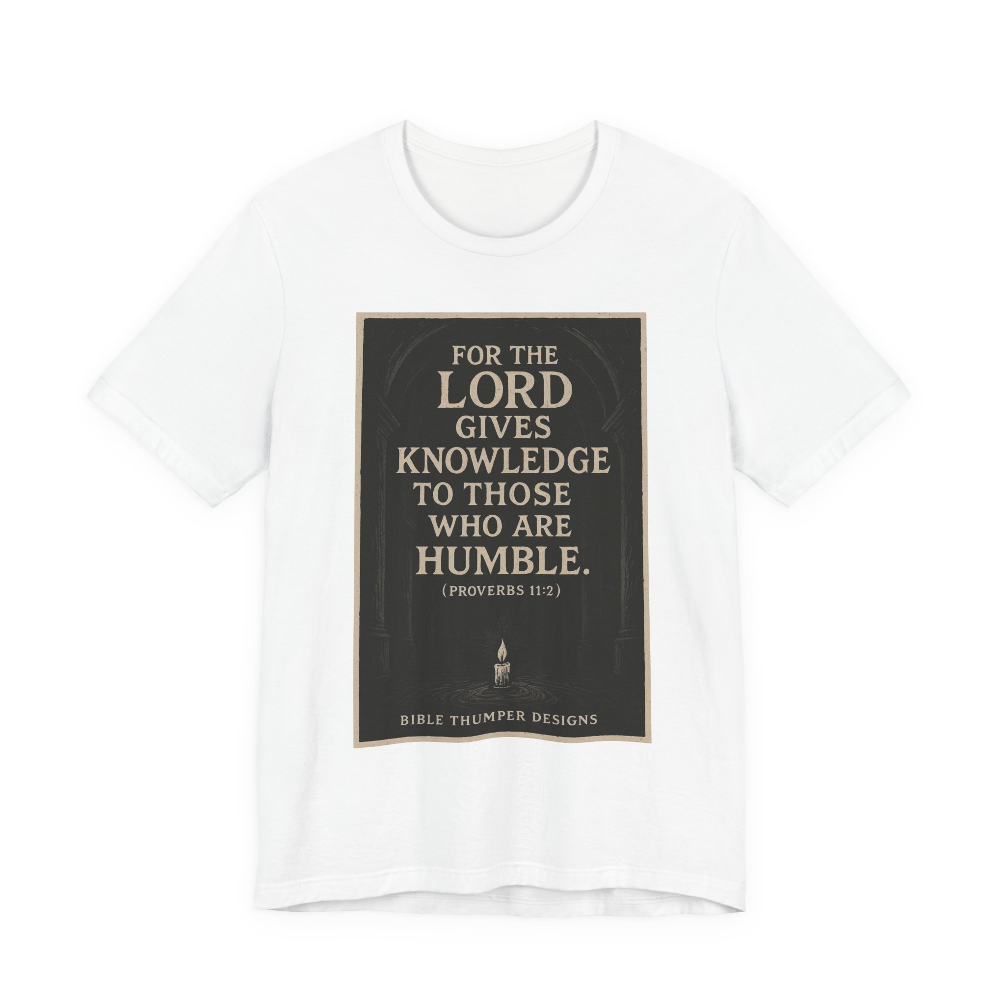 Christian Quote T-Shirt — “For the Lord Gives Knowledge to Those Who Are Humble” (Proverbs 11:2)