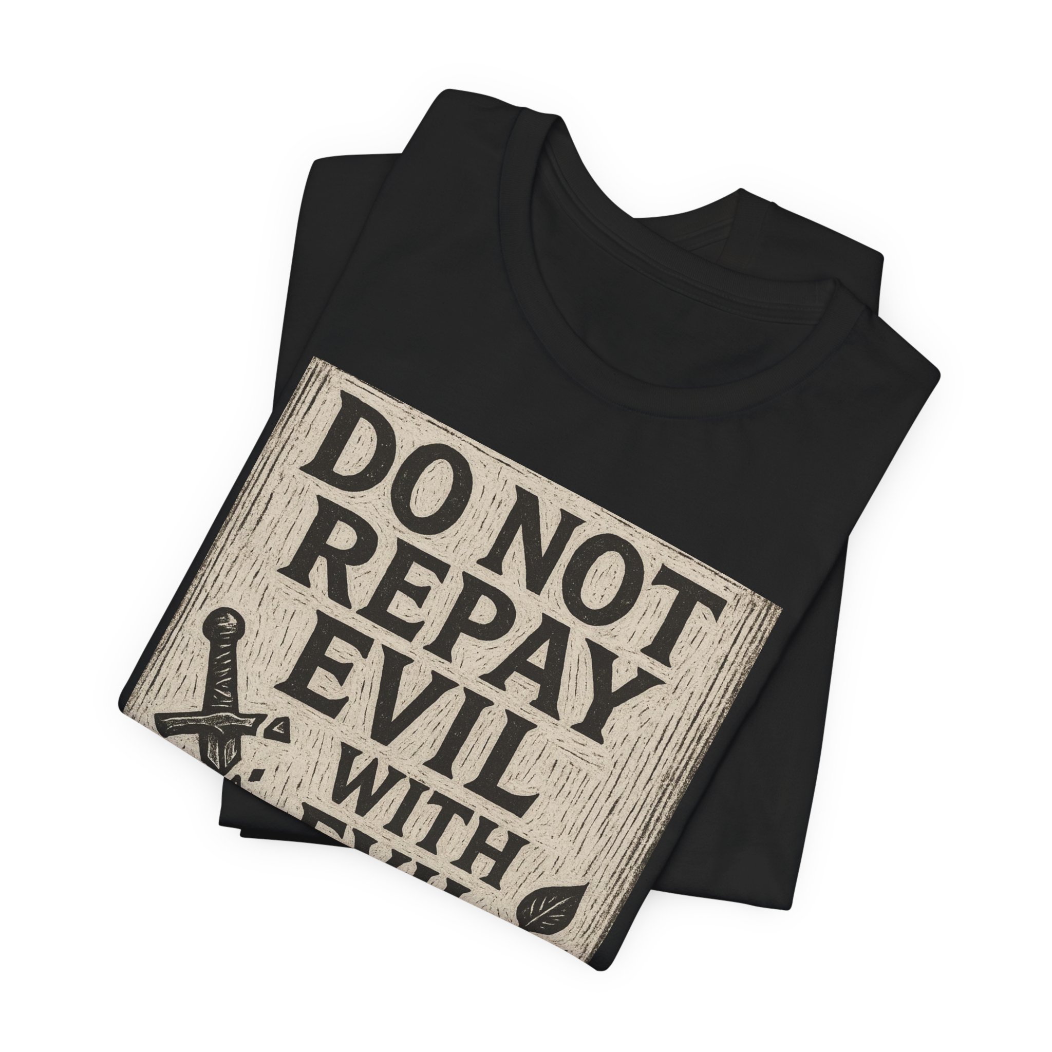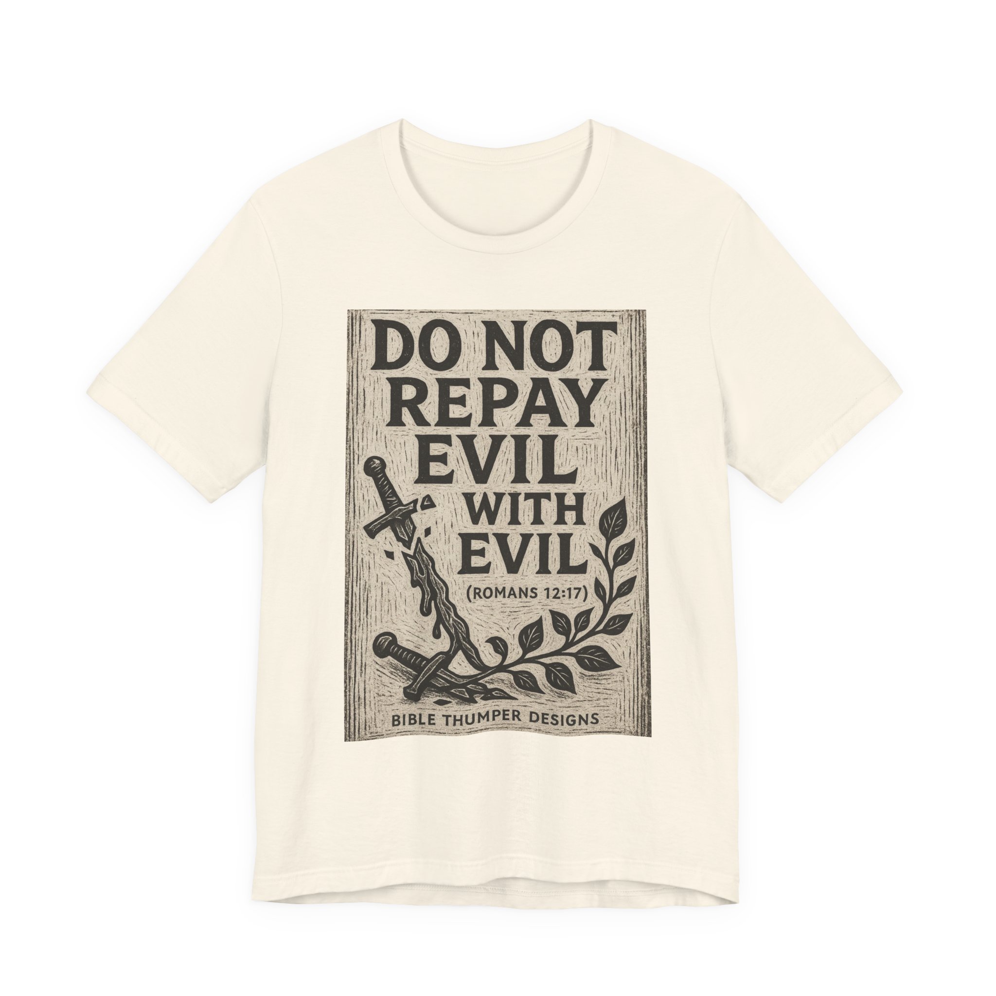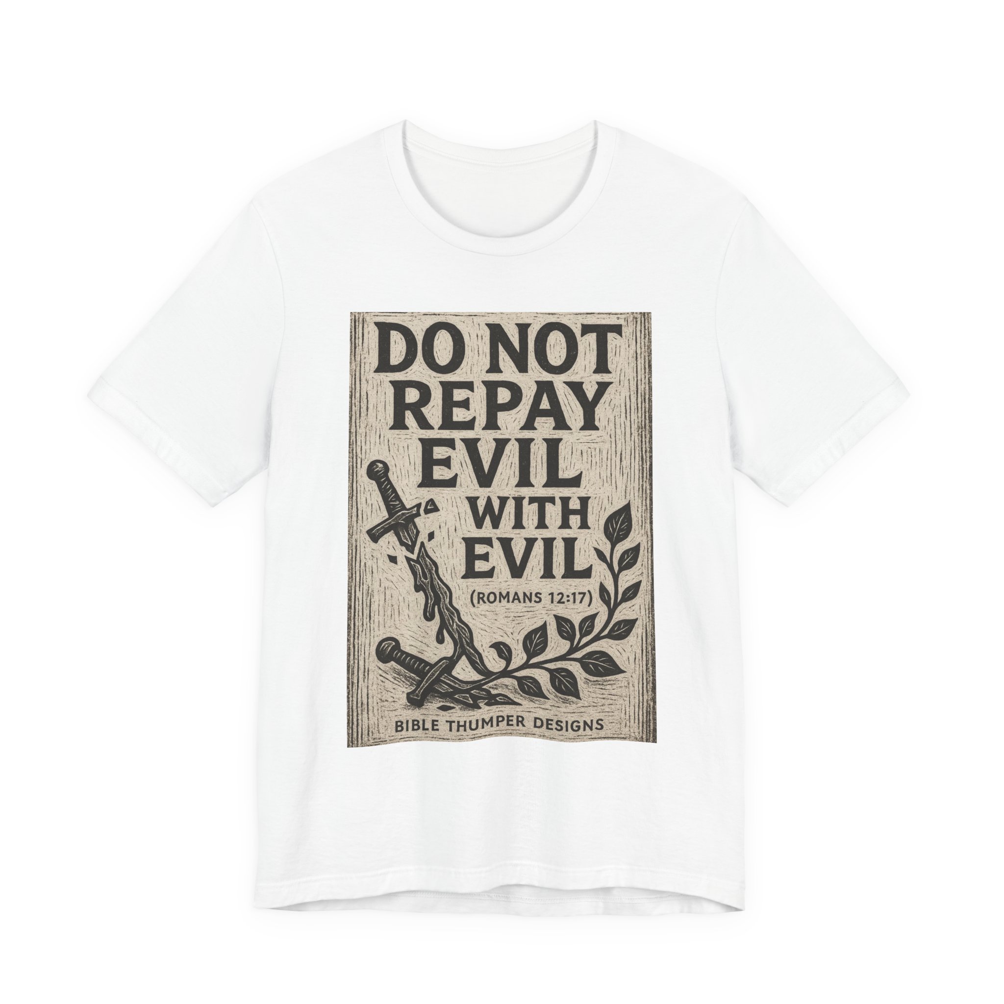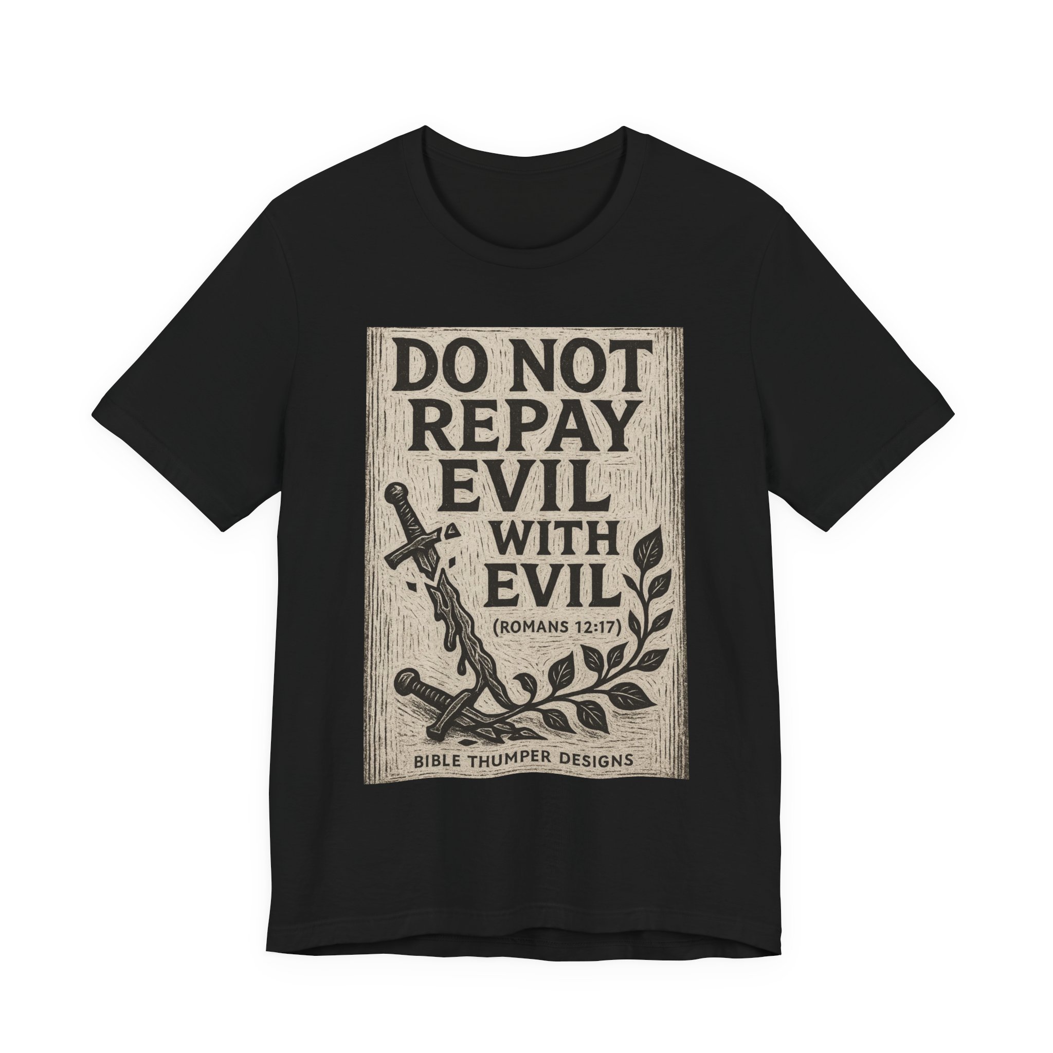 Be the first to review “Do Not Repay Evil With Evil T-Shirt — Christian Scripture Romans 12:17 Graphic Tee”