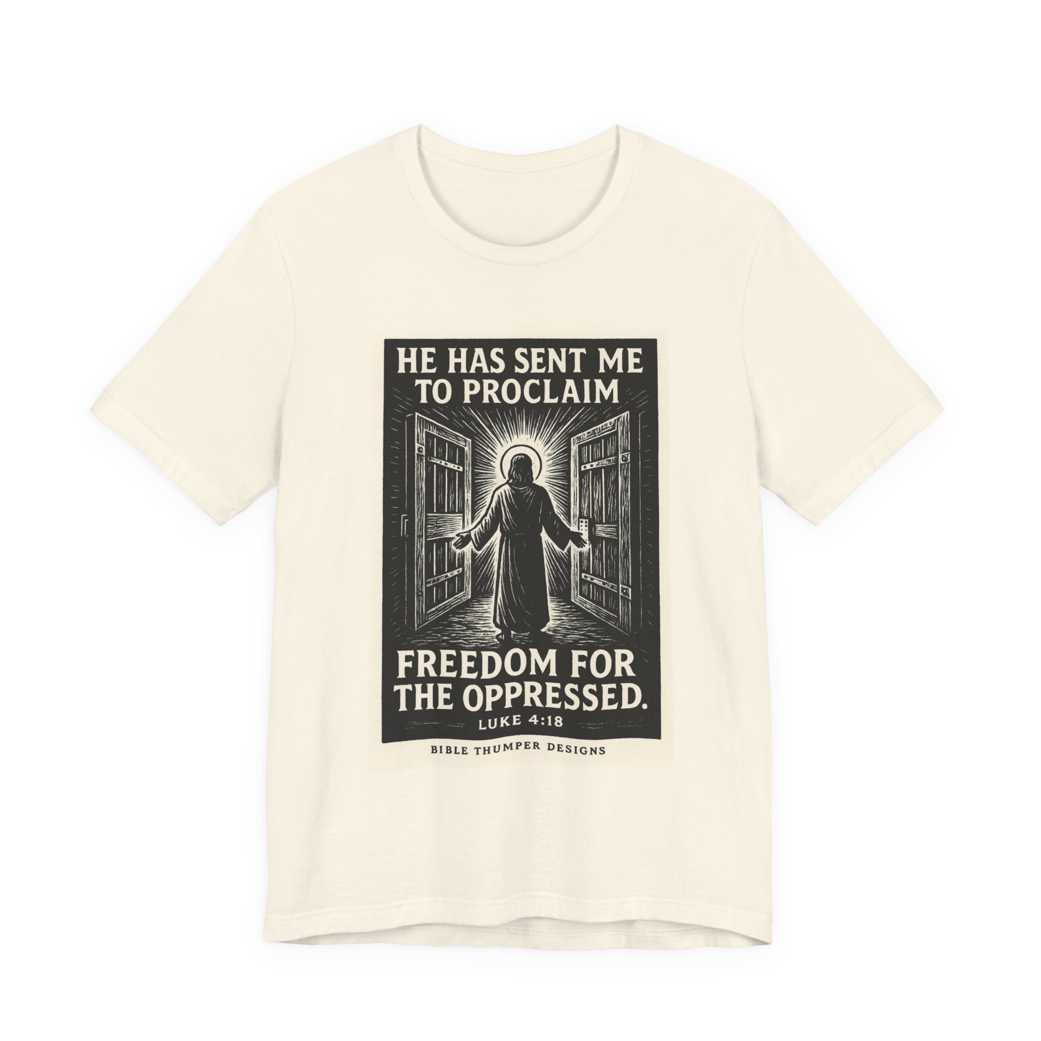 Freedom for the Oppressed T-Shirt — “He Has Sent Me to Proclaim” Christian Faith Tee