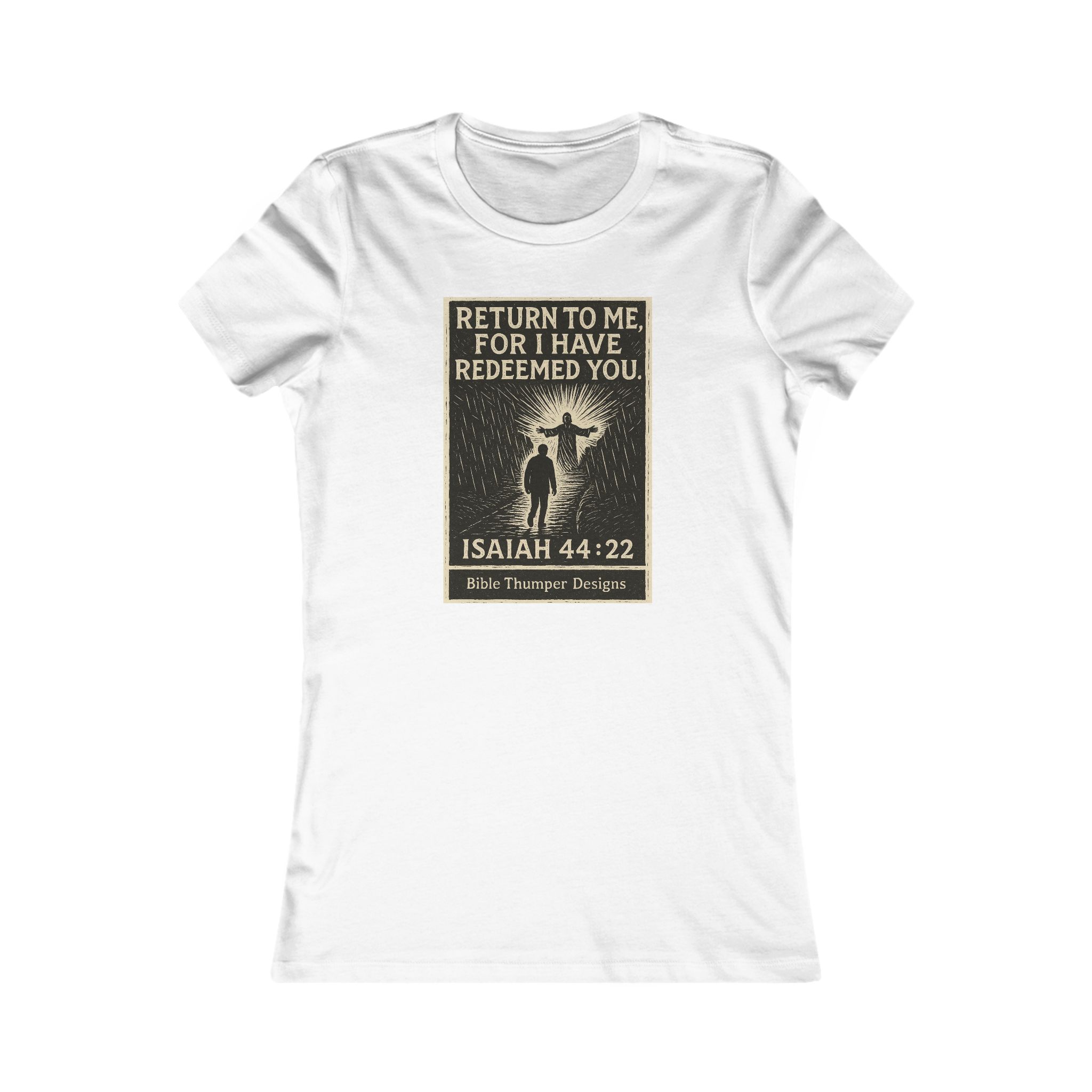 A slim, lightweight tee that carries a quiet, hopeful message. The soft, airlume combed cotton feels gentle against the skin while the fitted silhouette and longer body create a flattering, modern line. On the chest a tasteful, vintage-style panel reads “Return to me, for I have redeemed you — Isaiah 44:22” with a small silhouetted figure walking toward light. It’s the kind of shirt you reach for when you want to wear your faith simply and with intention — at Bible study, on a reflective morning walk, or layered under a jacket for church gatherings. The narrow fit and ribbed collar keep the shape neat, and the tear-away label keeps comfort uninterrupted. Because it runs slightly small, sizing up ensures the relaxed feel without losing the tailored look.